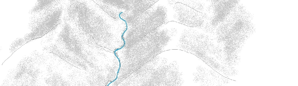 The scouring created by debris flows can be quite impressive; it greatly exceeds the potential for water erosion by small headwater streams. The picture below (taken upslope of the first photo in this post) gives an idea of what the effects of the scouring look like.