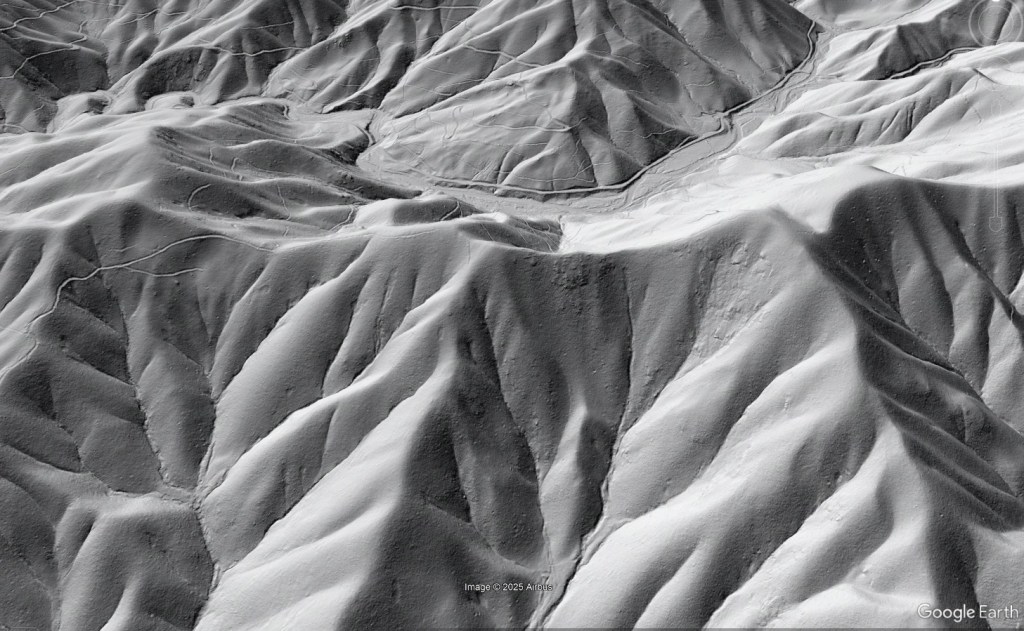 Debris flows like these begin as an initial landslide, producing a distinct scar in the landscape with steep, sharp edges where the slide began. This scar transitions into a visibly scoured track where the debris flow rakes saturated soil from the slope in its path, adding to the flow’s mass. The GIF below gives a general idea of this starting process and the scar that it makes, from the initial slide to the early phases of scour.